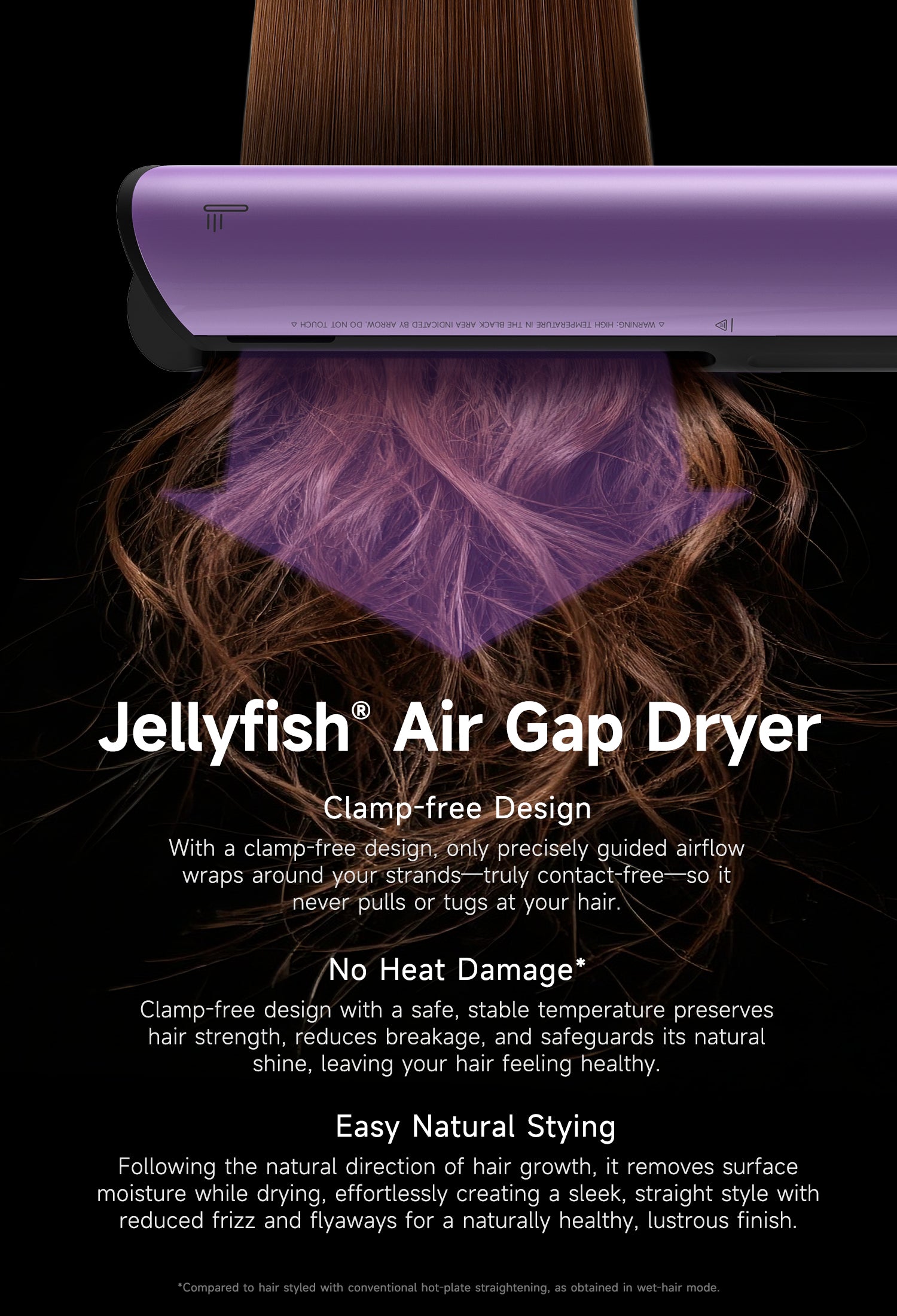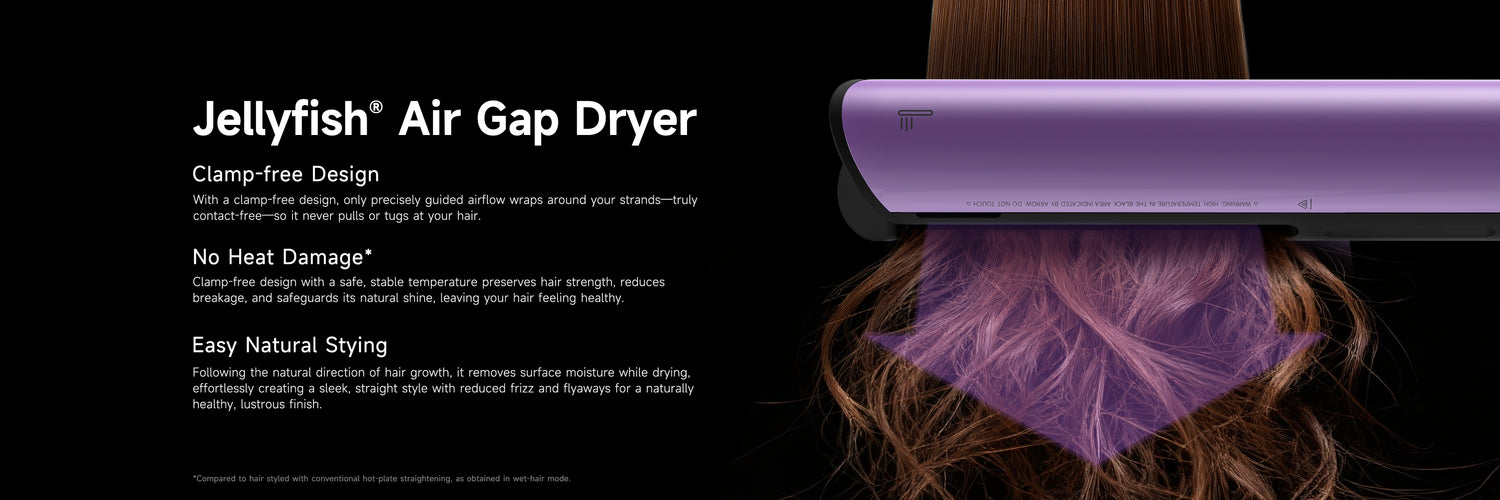 ✨First-Ever Zero Touch Air Straighten Tech × Bernoulli Effect✨Jeiiyfish Hair Straightener features Groundbreaking U-Slot Design and 1400W high-speed brushless motor with Narrow High-Pressure Air Jets to gently guide strands into airflow....